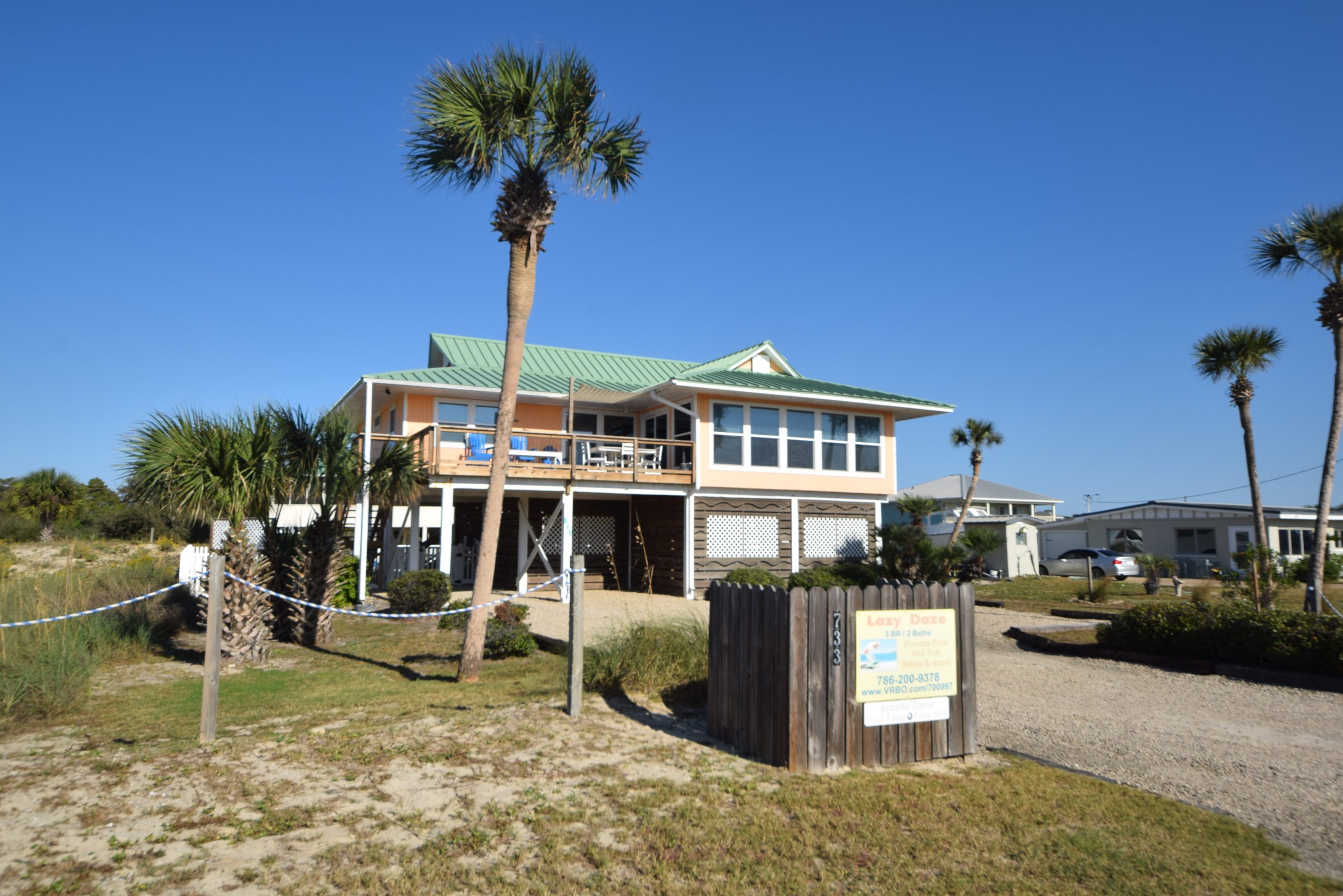 Lazy Daze a comfortable renovated house on St. George Island that has wonderful Gulf views. The house is across from the beach and has 3 bedrooms, 2 bathrooms, large open living area and lots of windows to let in the views. Your friends and family will enjoy the private pool, arcade game, full game room , hot tub and hot and cold outdoor shower.
